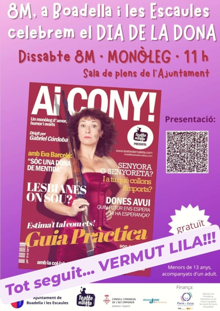 Aquest dissabte, 8 de març, a les 11h a la Sala de Plens de l’Ajuntament tindrà lloc el monòleg “Ai Cony!”